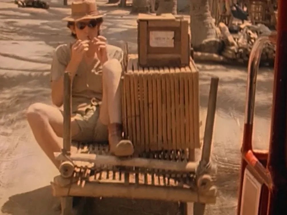 出生于1942年的奇拉·塔希米克(Kidlat Tahimik),原名 Eric Oteyza de Guia,在菲律宾接受本科教育,在宾夕法尼亚大学获硕士学位。1977年,35岁的他以导演、编剧、演员、制片、剪辑的多重身份,制作了一部混合了伪纪录片(mockumentary)、电影散文和影像游记风格,充满率真剖白和自嘲自省的《甜蜜的梦魇》(Perfumed Nightmare),用“第三电影”的观念和方法,对资本主义和殖民主义展开批判,使他获得了“菲律宾独立电影之父”的称号。图为《甜蜜的梦魇》剧照。© Kidlat Tahimik