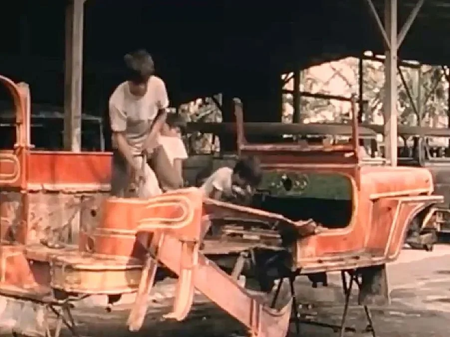 Sarao Motors,吉普尼制造厂,在石油危机时每周生产五辆车。《甜蜜的梦魇》剧照。© Kidlat Tahimik