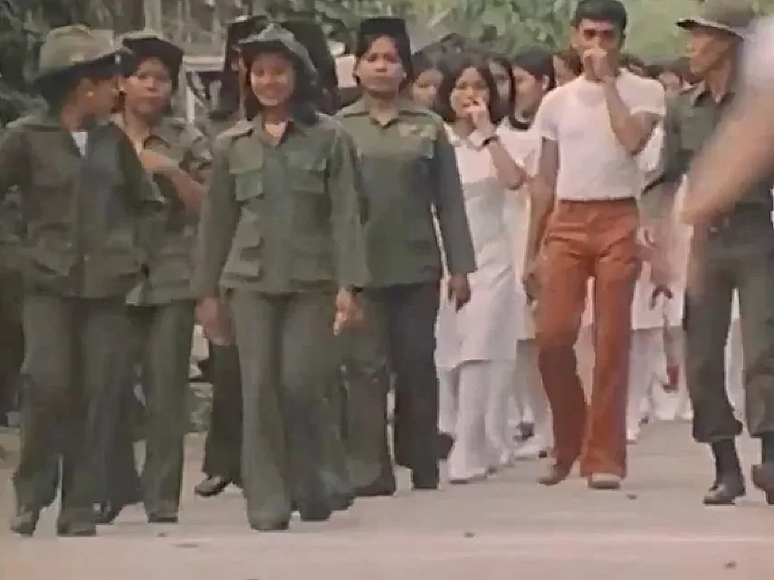 制服对性的抑制和异性恋的正统地位代表了马科斯统治下的道德规训。《甜蜜的梦魇》剧照。© Kidlat Tahimik