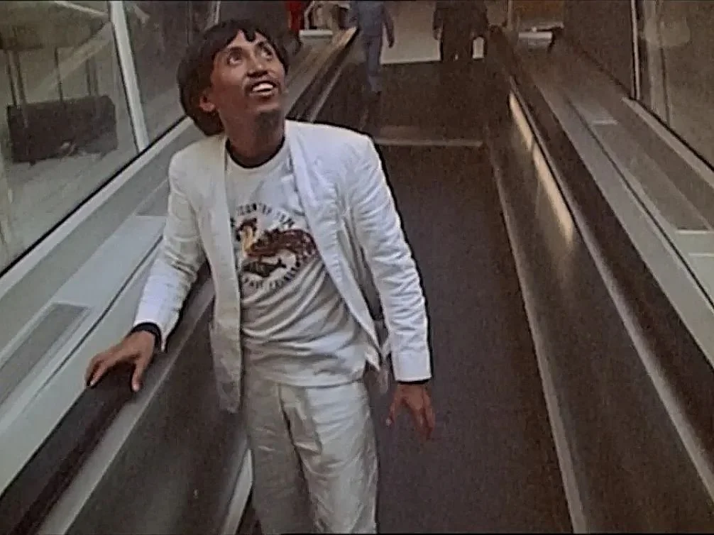 “我是奇拉·塔希米克!我选择我的车!我可以通过任何桥!”《甜蜜的梦魇》剧照。© Kidlat Tahimik