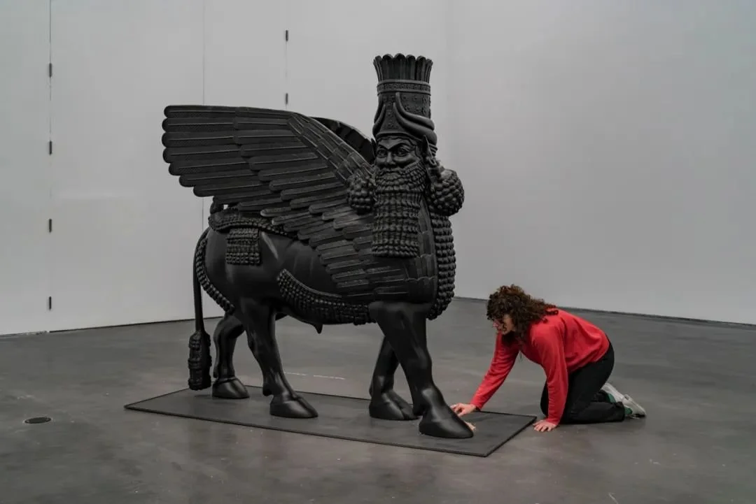 瓦法·比拉尔(Wafaa Bilal),《在一粒小麦中》(In a Grain of Wheat),3D打印拉玛苏(Lamassu)雕像以及注入了它的数字 DNA 的伊拉克麦粒,2023年。图片拍摄于芝加哥当代美术馆比拉尔的个展“放任我”(Indulge Me),摄影:Robert Chase Heishman,2025年。© Wafaa Bilal + MCA Chicago