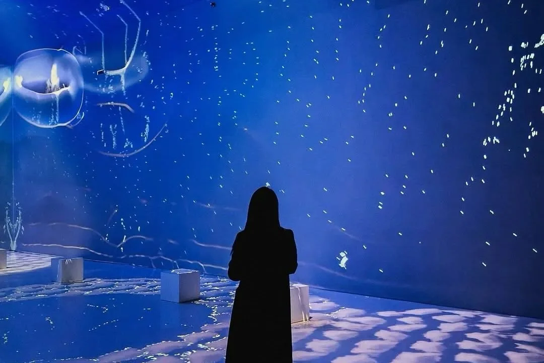 韩国艺术家夫智鉉(Boo Ji-Hyun,1979年出生于济州)2022年的沉浸式新媒介作品《终极空间》(Ultimate Space)。济州艺术平台,第四届济州双年展,2024年。© Jeju Biennale